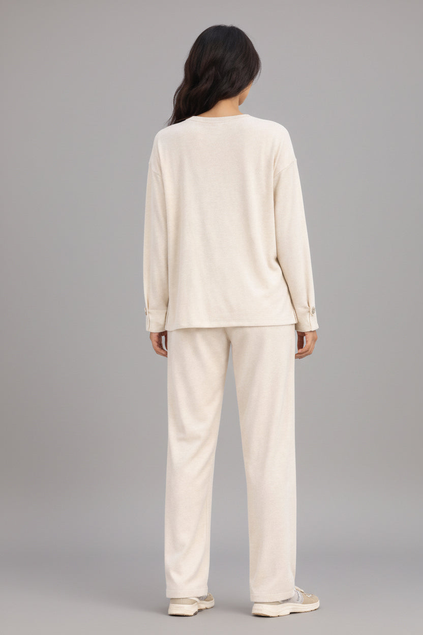 Ensemble décontracté tendance, couleur unie, manches longues, pantalon pattes d'éléphant