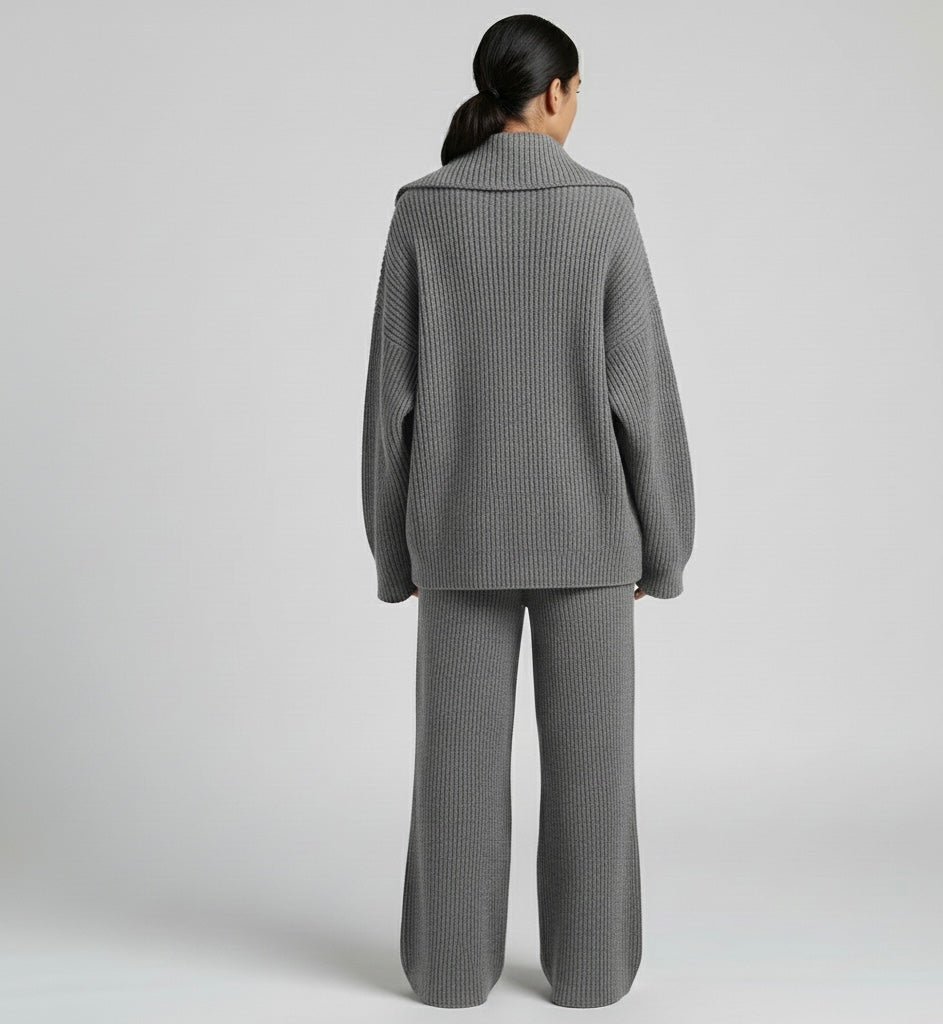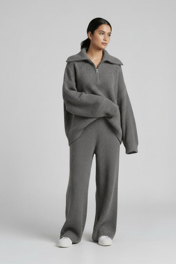 Ensemble deux pièces automne-hiver : pull à demi-zip et pantalon droit