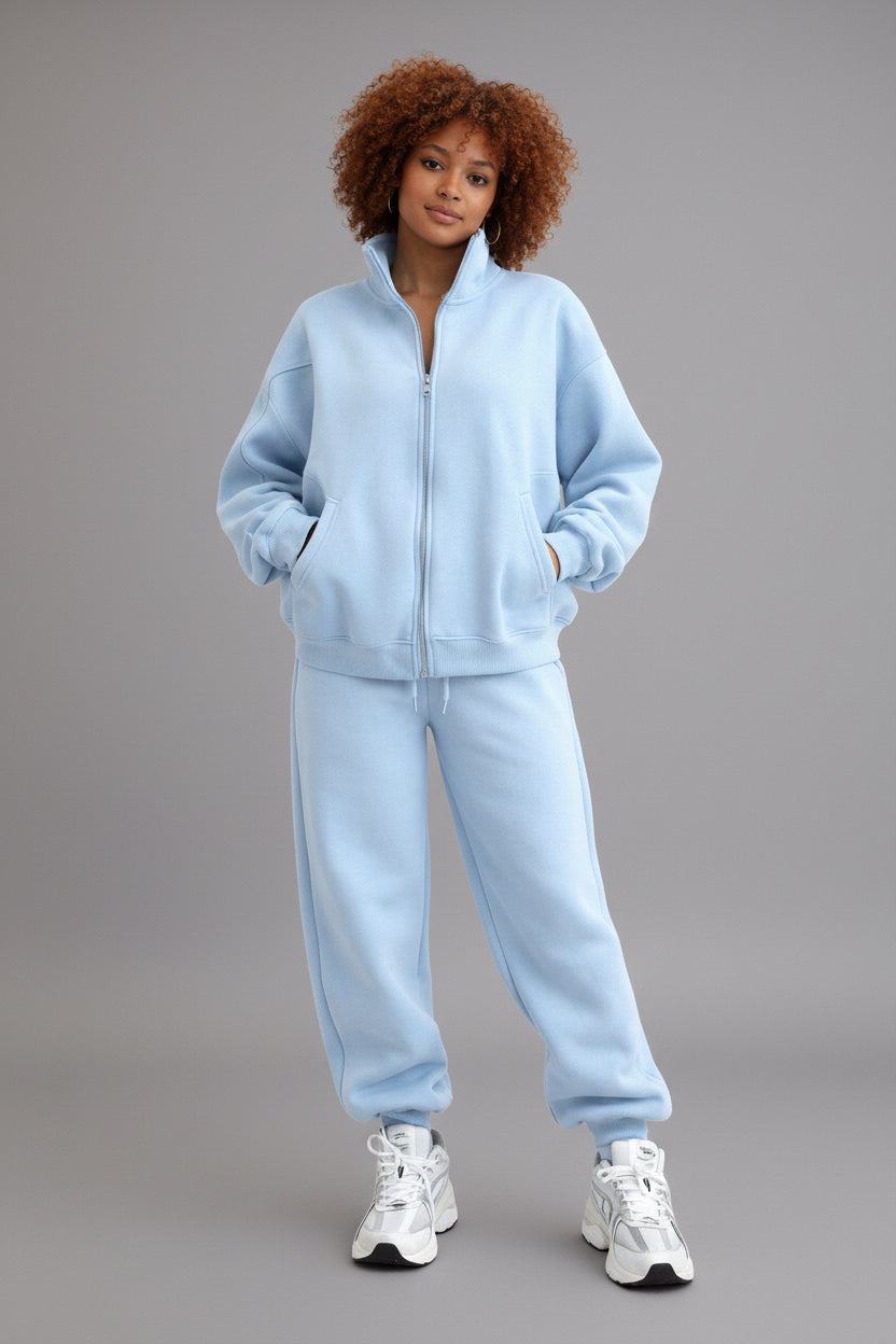 Ensemble : gilet zippé à col montant avec poches et pantalon à cordon de serrage