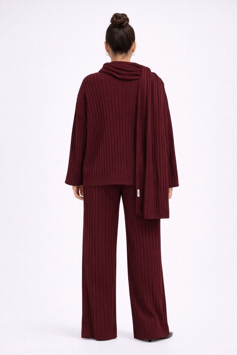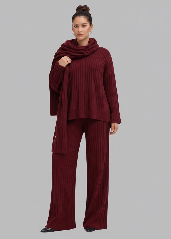 Ensemble pull et écharpe à col rond uni, style décontracté