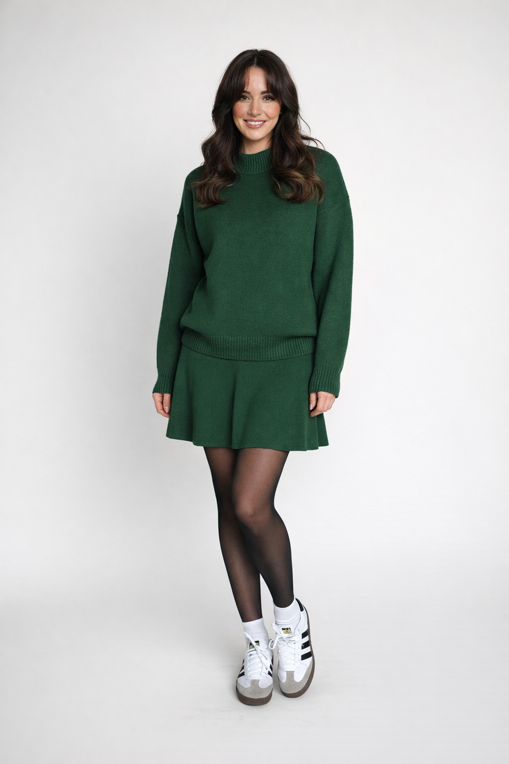 Ensemble pull et mini-jupe pour femme en maille élégant, uni